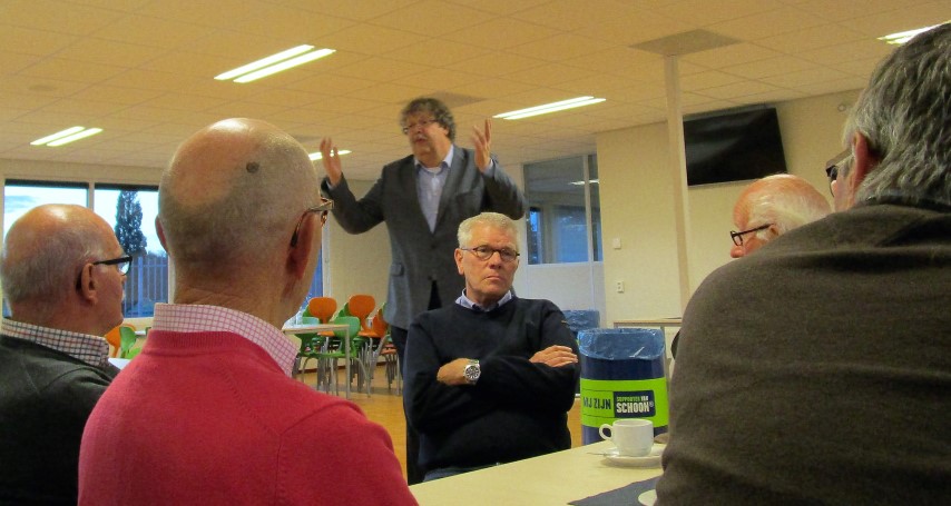 Dan gaan de gesprekken door onder het buffet dat aangerukt werd. We worden allemaal ouder. ‘Hoe is het met Wim?’, wordt me herhaaldelijk gevraagd. De groep collega’s van de oude RK LTS kennen hem het beste. Bij alle festiviteiten en schoolkampen stond hij zijn mannetje. ‘Nou… wat slijtage in de heup’, antwoord ik dan. ‘Nou als het daar bij blijft’… is het antwoord. Bé z’n vrouw is net overleden en Rieks is verhuisd naar een appartement. ‘En hoe is het met Catrien?’,vraag ik hem. Rieks maakt een golvende beweging met zijn arm. ‘Op en af dus’. Ook dit hoort bij zo’n avond. De tijd vliegt, net als de jaren. De kleinkinderen die in onze werkzame tijd werden geboren zijn intussen 18 en 20. Zo worden ervaringen uitgewisseld. ‘Doe je de groeten aan Wim?’, wordt me bij het afscheid meegegeven.