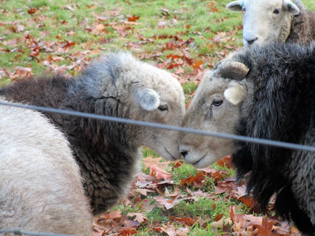 Het is een mooi gezicht, de Herdwicks in de wei. We hebben er vanuit huis ook goed zicht op nu ze vooraan lopen. Af en toe ga ik even kijken hoe het met de dames en heer gaat. Meneer de ram voelt zich nu helemaal in zijn element en komt ook vooraan wanneer ik bij het hek sta. En dan gebeurt er meestal wat. Hij krijgt de geur van de dames nu wel heel dichtbij in zijn neus. Hij begint de snuiven en trekt zijn lip op. Ja… hij heeft zeker wel belangstelling voor zijn harem. Jammer dat zijn horens half zijn anders was het helemaal een Don Juan. Stiekem heb ik hem Harold genoemd naar mijn stoere neef in Iowa. De dames maakt het blijkbaar niets uit. Hij maakt indruk op ze, ook zo met halve horens mag hij er wezen. Wat een prachtbeest. Herdwicks zijn van nature heel nieuwsgierig. Zodra ik er aan kom en even roep: ‘Kom dan… kom dan…’ trekken ze een sprintje naar het hek. Ik hoop dat ze nog even mogen blijven van Rob.