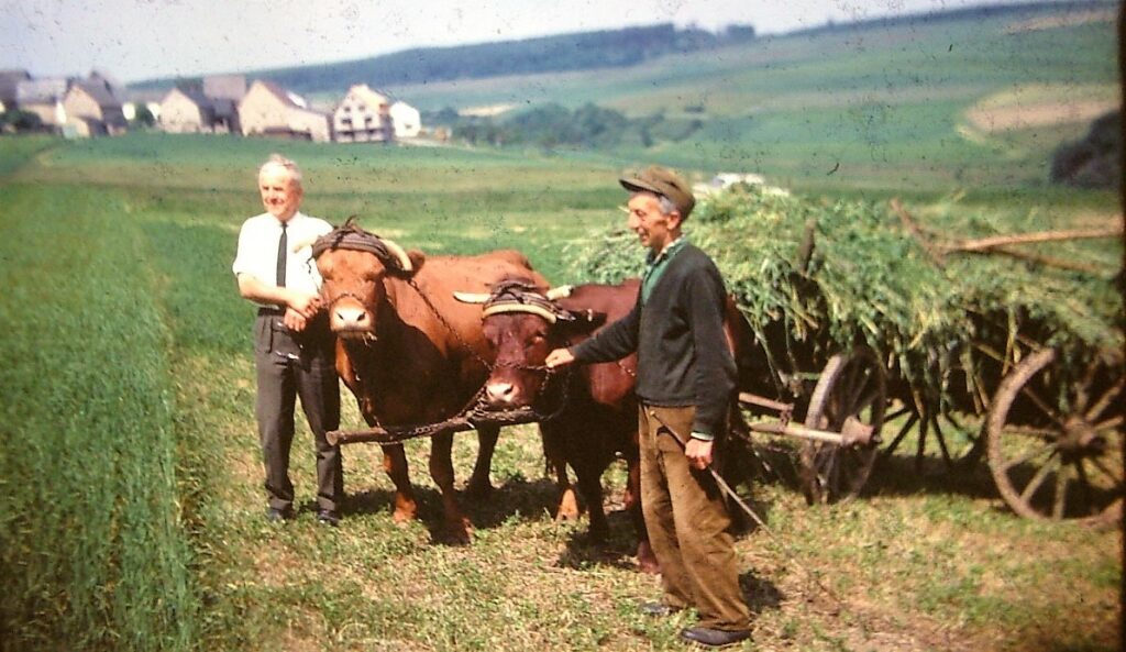 Héééél lang geleden gingen we voor het eerst naar Badenhard, vakantie vieren in de jachthut van Laborenz. Henk en Anneke gingen mee. Het was al een heftige reis. Henk en Anneke raakten we kwijt vanwege een lekke band, het was nogal zoeken naar de weg naar boven die onder een grote koekoeksklok in Sankt Goar begon, maar het lukte en we hadden een erg leuke week. Jammer, vanwege ziekte moesten Henk en Anneke op huis aan en ik herinner me nog hoe kaal dat voelde terwijl we toch alle drie jongens mee hadden. Ach… het duurde niet lang voor we weer op gang waren. Er werd frambozen geplukt, melk gehaald bij boer Steeg, een kasteel bezocht en Kaffeekuchen uitgeprobeerd. Tot we op een middag vanaf de Hohe Stein terug kwamen bij ons huisje en pa, mama, en Henk en Anneke vonden. Ze hadden een kip meegebracht want Henk en Anneke zouden wel verteld hebben dat er geen winkel in de buurt was.. Samen maakten we een mooie wandeling. Pa moest beslist naar de boer die met koeien voor de wagen klaver aan het opladen was. Ze bleven slapen en nadat de Rijnwijn geproefd was werden de slaapplaatsen in orde gebracht. Henk en Anneke hadden hun tentje weer meegebracht maar pa en mama zouden op onze slaapbanken in de kamer slapen en wij schoven de jongens bij elkaar en gingen er in het piepkleine slaapkamertje bij. Wij hadden ons al teruggetrokken toen we pa hoorden zeggen: ’Zo moder do noe’t harnas maor uut’. Het was nog in de tijd dat dames een korset droegen. Hij heeft het nog lang moeten horen. Och… ik schrijf zo maar even wat in me op komt…