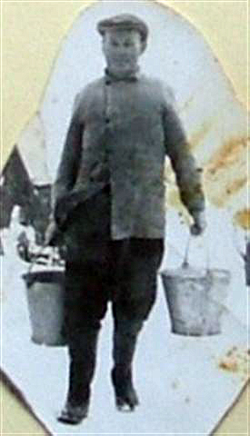 Foto: Opa Johan Bijenhof, hier kaarsrecht, waarschijnlijk om water naar de kippen te brengen…