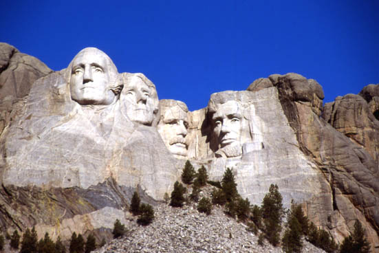 In de Black Hills: Mount Rushmore met de presidenten Washington, Jefferson, Roosevelt en Lincoln.