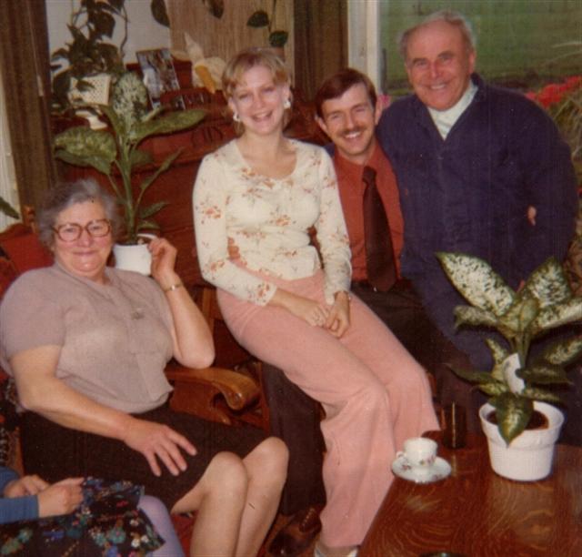 Herman was de jaartallen even kwijt, want hij dacht dat ze in 1969 bij hen waren, maar het was echt 1975 vlak nadat ze 25 jaar getrouwd waren op 10 februari 1975 en net voordat Henk en Anneke zouden trouwen in juni. Oom Sjoerd heeft zich ook verdienstelijk gemaakt door voor Netty een paar mooie rokjes te maken. Het viel ze op dat Herman veel naar de tv keek en dat Netty erg druk was om hen alles naar de zin te maken. Ieder morgen bakte ze bv. brood. Mama was helemaal weg van haar, zo hartelijk als ze was. De heenreis was niet zonder slag of stoot verlopen. Op Schiphol kregen ze voor het opstijgen al een lekke band en moest het opstijgen afgebroken worden. Daardoor misten ze in Chicago de aansluiting op ik meen Sioux Falls, zodat ze een nacht op het vliegveld van Chicago moesten wachten. Ze waren na die tijd zo vol van alles wat ze meegemaakt hadden dat ze er nog lang over vertelden.[/i]
