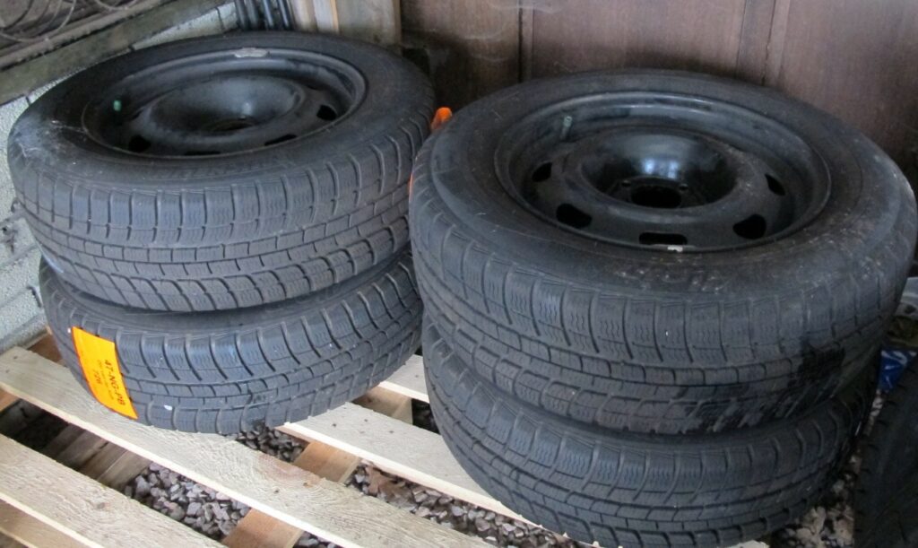 Dus… wie heeft er belang bij vier z.g.a.n Michelin winterbanden 195/65R15 91T 4 gats, compleet met velgen.