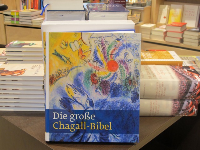 Dan gaan we natuurlijk de shop in waar nu eens echt mooie kunst verkocht wordt, maar de prijzen zijn er ook naar en we herinneren elkaar regelmatig aan de opmerking van Ben uut Luttenberg:’He’j d’r gebrek an?’ Er staat wel een prachtige bijbel met illustraties van Chagall.