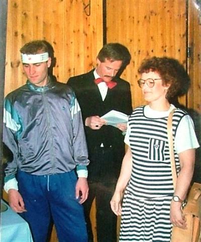 Het laatste voorval werd op onze 25-jarige bruiloft nagespeeld door Mark en buurvtouw Roelie Vellinga die zich voor de gelegenheid had uitgedosd in mijn jurk en met mijn boekentas.
