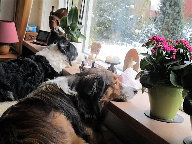 We hebben al een heel stel honden gehad. Allemaal prachtige dieren, zowel innerlijk als uiterlijk. Toen , nog aan de Kuifmees, onze Schotse collie Laska een operatie niet overleefde vond Wim het tijd om zonder hond verder te gaan. Mark en ik waren het niet met hem eens, net als buurvrouw Liesbeth. Die miste Laska net als wij. Zij liet haar vaak uit als wij naar werk of school waren. Nee, ze hoefde zelf geen hond maar vond het erg leuk dat wij er eentje hadden. Toen er op een gegeven moment een half jaar oude bordercollie in de krant werd aangeboden wilde ze graag mee om te kijken of het wat was voor ons allemaal. Wim ging overstag en reed mee naar Hollandscheveld.