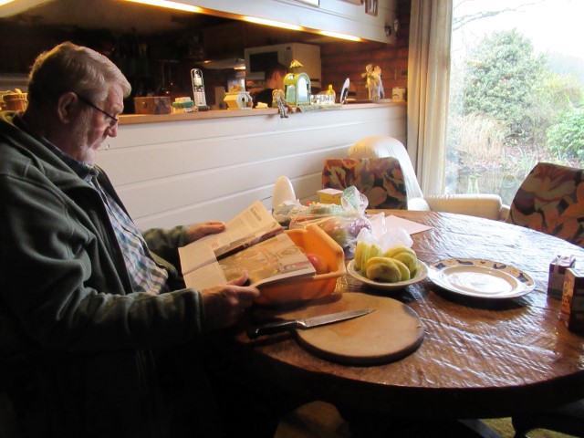 Ziezo, de appelflappen zijn klaar. We waren vanmorgen vroeg aan de gang. Wim schilde de appels en sneed ze in dunne plakken en ik stond achter het fornuis. Daan en Tim verzorgden de verzorging met kaneel en suiker en het onderdompelen in het beslag. Het is altijd een gezellige bezigheid: een schaal voor hier, eentje voor de Timmertjes en ik neem aan dat Gerhard er ook een komt halen. We hoeven niet bang te zijn dat onze schaal blijft staan want Rick komt vanmiddag deze kant op.
