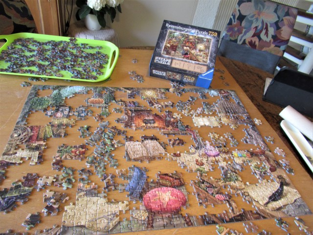 Of we ons niet vervelen hier in afzondering? Daar zorgen onze lammeren voor. Ze beginnen al te groeien en hebben mij als kunstmoeder helemaal geaccepteerd. Daarnaast hebben we een enorme puzzel op tafel liggen. Hij is lastig want een aantal dingen kloppen niet, bewust gedaan. Als hij af is schijnen er nog opdrachten in te zitten. Dat maakt me nieuwsgierig dus puzzel ik nog even door.