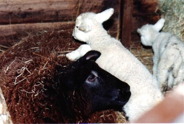 Coba, een van onze eerste schapen, met haar witte tweeling.