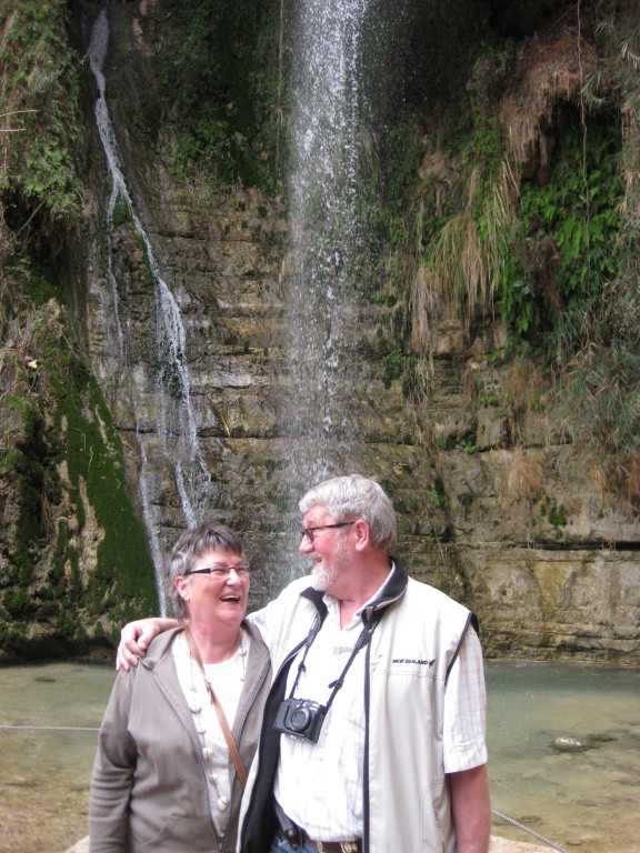 Al bijna 47 jaar. Toen deze foto gemaakt werd, op die speciale plek bij de David Fall in de En Gedi oase, gaf David de volgende aanwijzing: ‘Het moet wat vrolijker. Kijken jullie nou eens naar elkaar als op de eerste dag dat je elkaar zag….’ Tja…